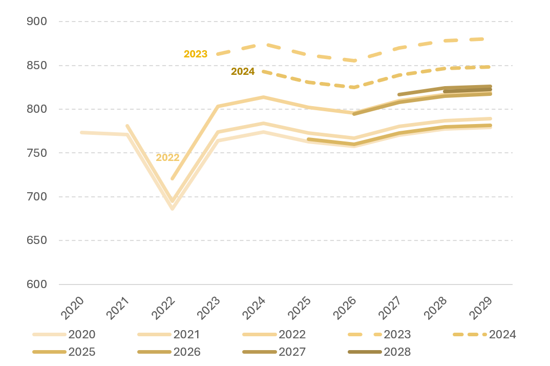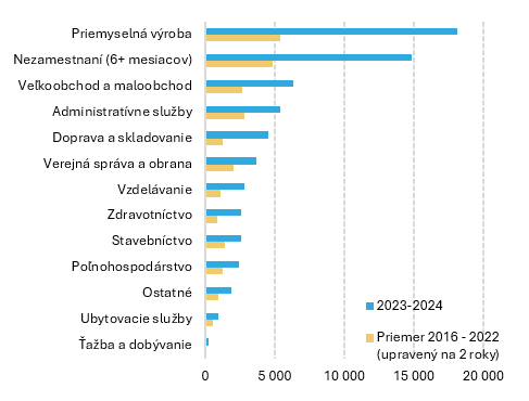 Pozn.: „Priemerný počet“ je dvojnásobkom priemerných údajov v rokoch 2016 až 2022, aby sa zabezpečila porovnateľnosť s dvojročným obdobím 2023 a 2024.