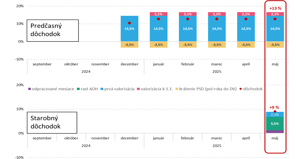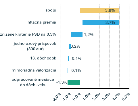 Do výpočtu novopriznaného dôchodku vstupujú rasty dvoch nominálnych veličín, ktoré vychádzajú z podobných období predošlého roku: