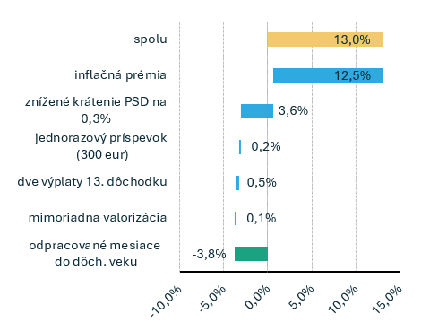 [12] V prípade mimoriadnej valorizácie ide o nulový vplyv, keďže jej výška sa zohľadňuje pri nasledujúcej novoročnej valorizácii. ↩