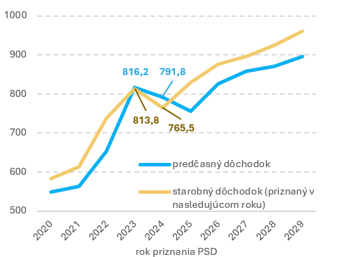Graf 8: Ilustratívne porovnanie SD a PSD na prelome rokov 2024 a 2025