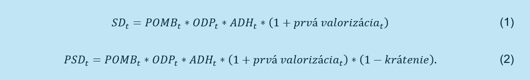 Porovnanie rovníc (5) a (6) zjednodušíme predpokladom, že ODP a POMB zostanú rovnaké[20] a abstrahujeme od miery krátenia, ktorá zohľadňuje skutočnosť, že predčasný dôchodca bude v priemere poberať dôchodok dlhšie: