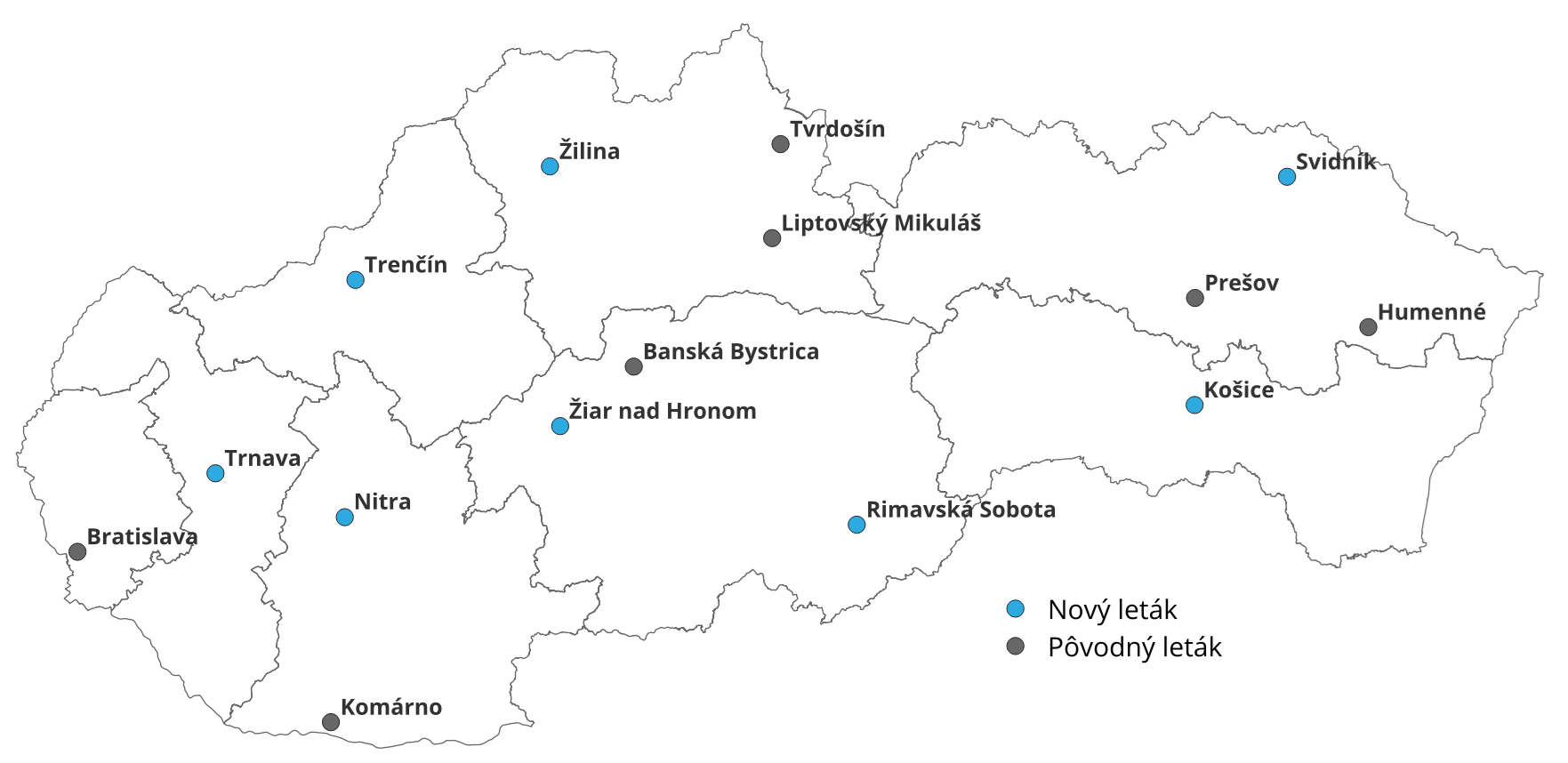 Obrázok 2: Mapa kancelárií distribuujúcich pôvodný a nový leták