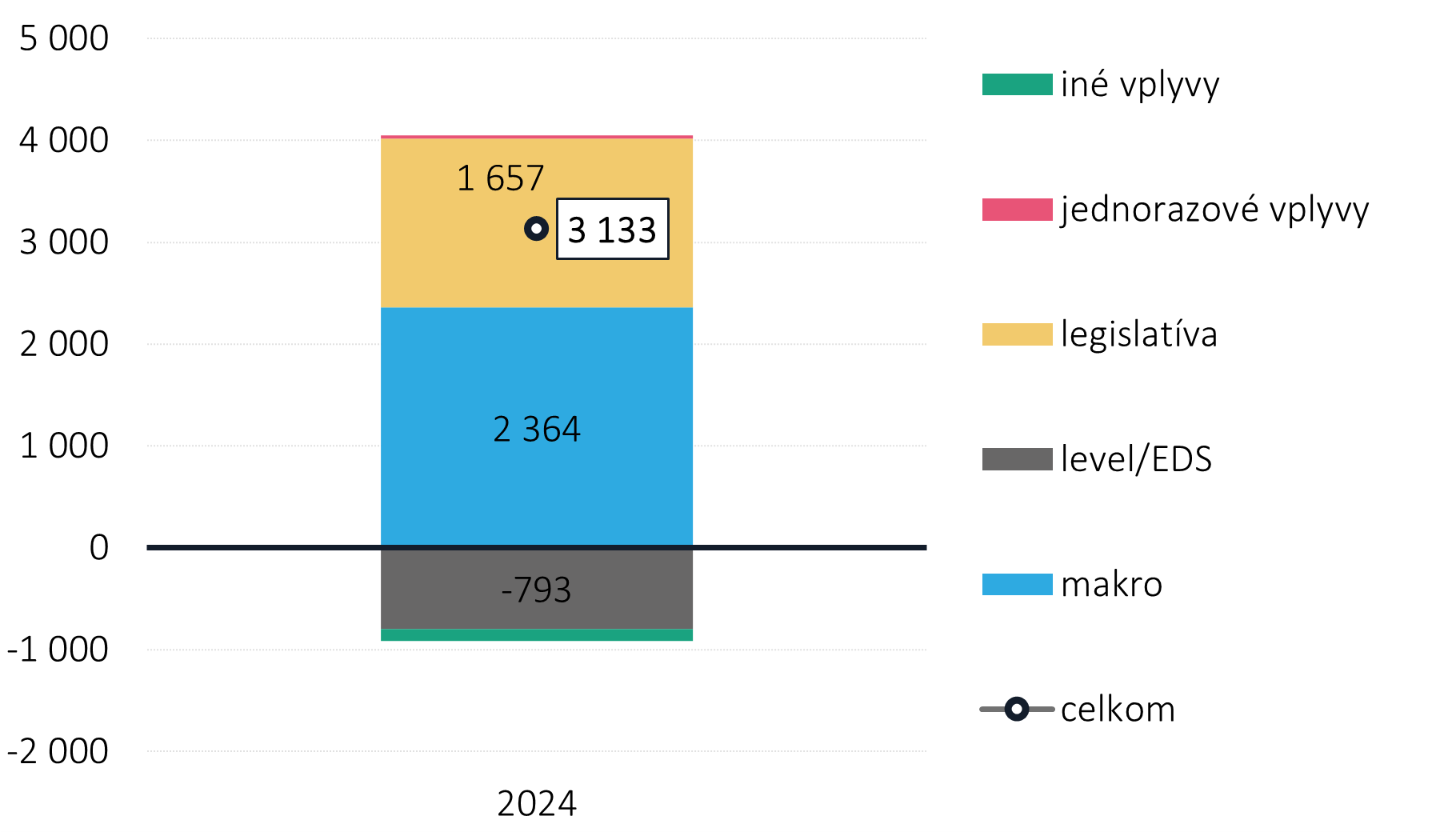 Tabuľka 3: Vplyv legislatívy zahrnutej v prognóze a novej legislatívy (ESA2010, mil. eur)