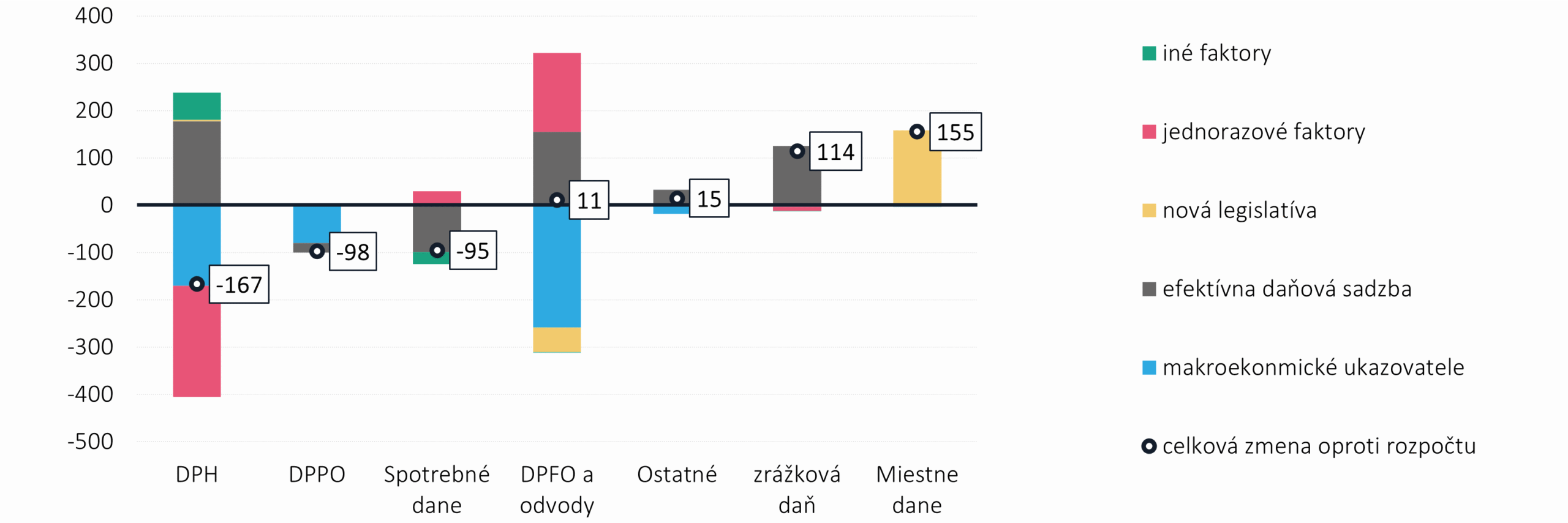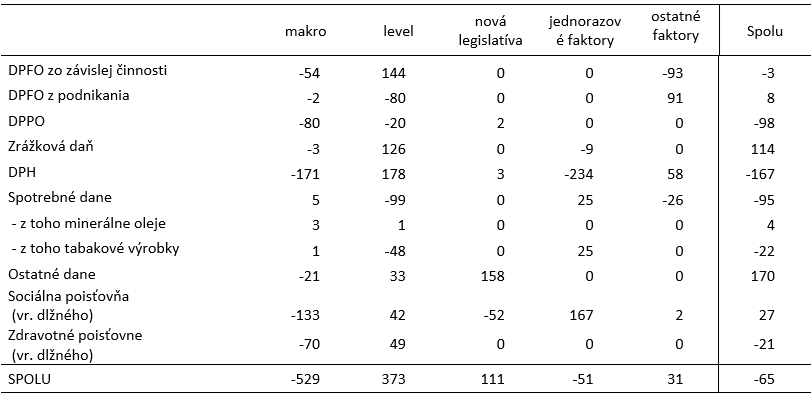 Rozdiel v príjmoch podľa jednotlivých faktorov – Spomalenie makroekonomického vývoja kompenzované vyšším výberom daní