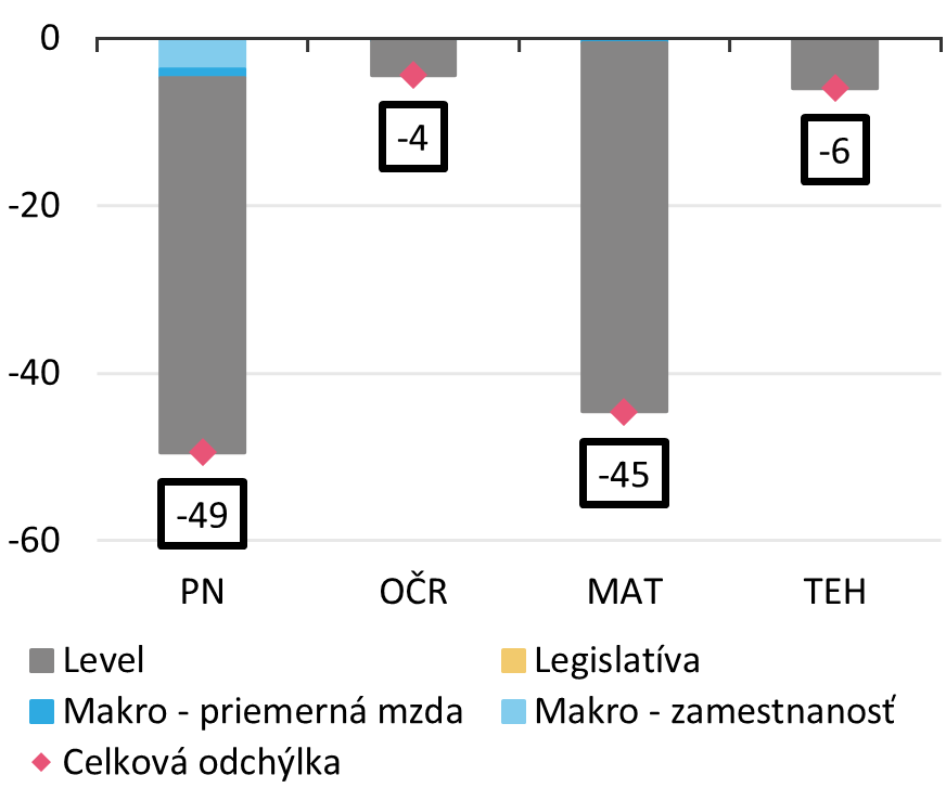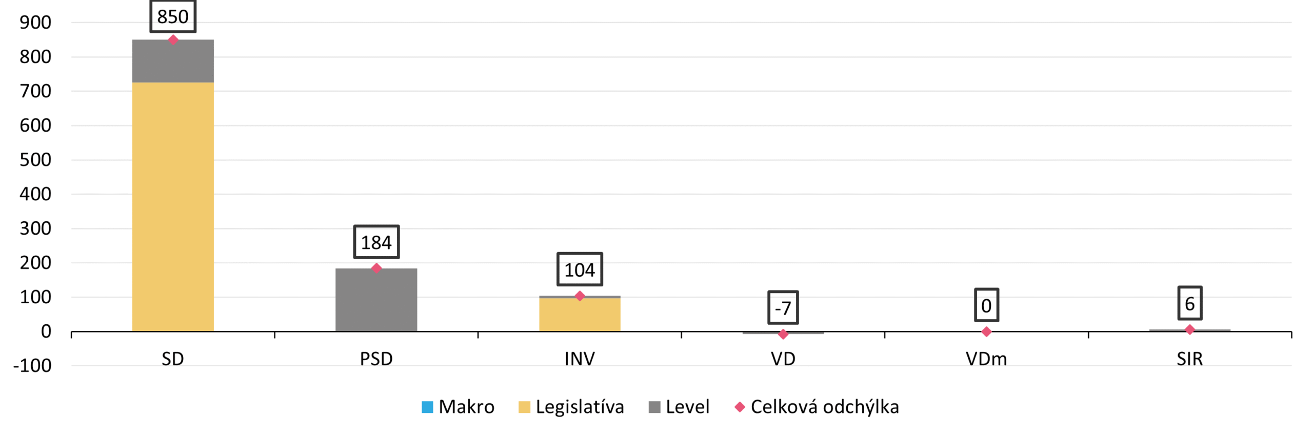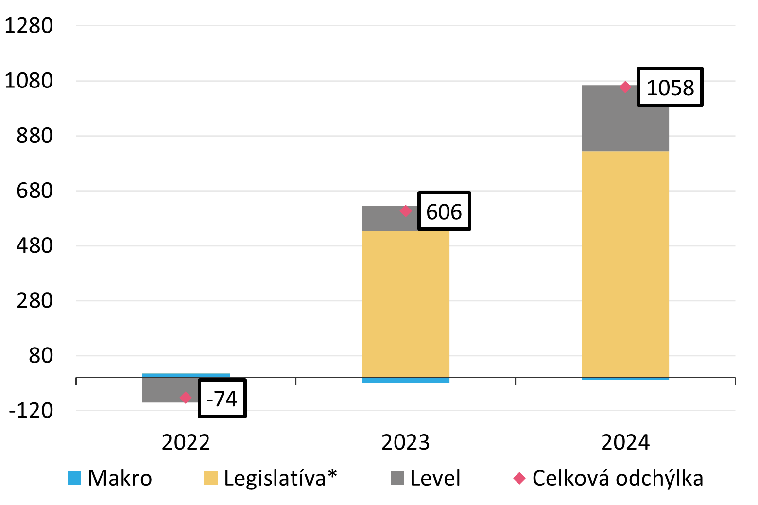 Graf 2: Odchýlky od skutočnosti podľa faktorov (mil. EUR)
